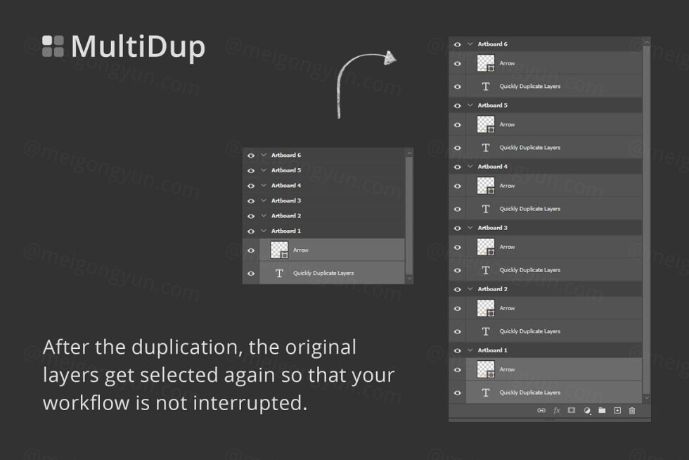 为了进一步加快工作流程,该插件包括 2 个快速命令,可将您选择的图层复制到所有其他打开的文档或当前活动文档中的所有其他画板。