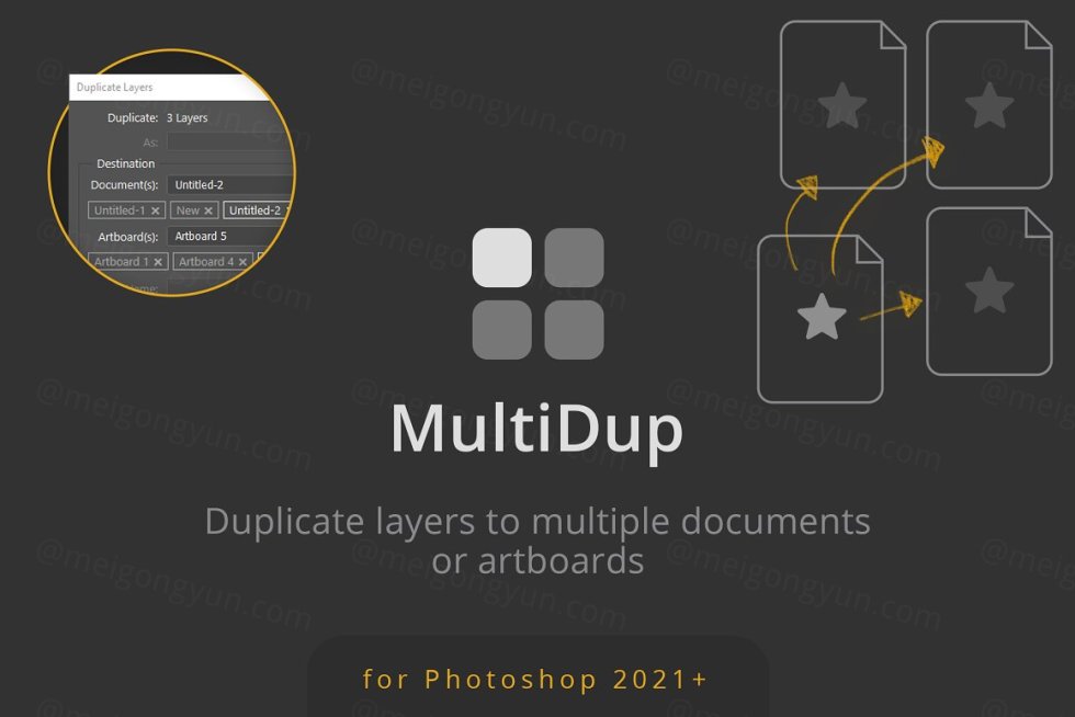 如果您经常将图层从一个文档拖到另一个文档,MultiDup 是让您的生活更轻松的完美插件:与原生复制对话框不同,MultiDup 可以选择多个文档和画板作为目的地。除此之外,对话界面的设计看起来和原来的一模一样,所以大多数人都已经熟悉了。
