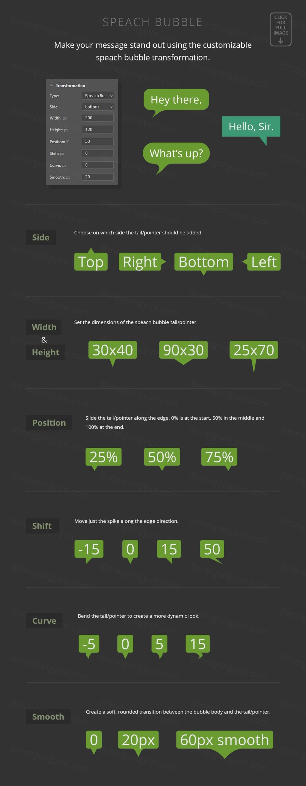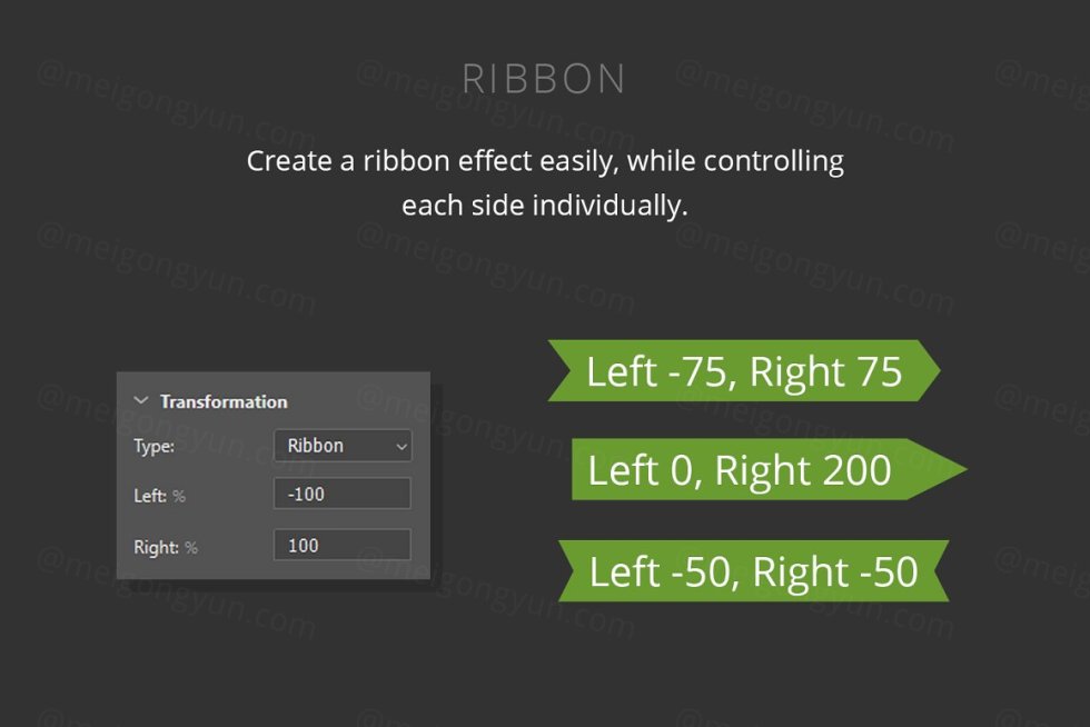 5 种高级转换类型(Ribbon、Skew、Dashed、Blob、Speak Bubble)