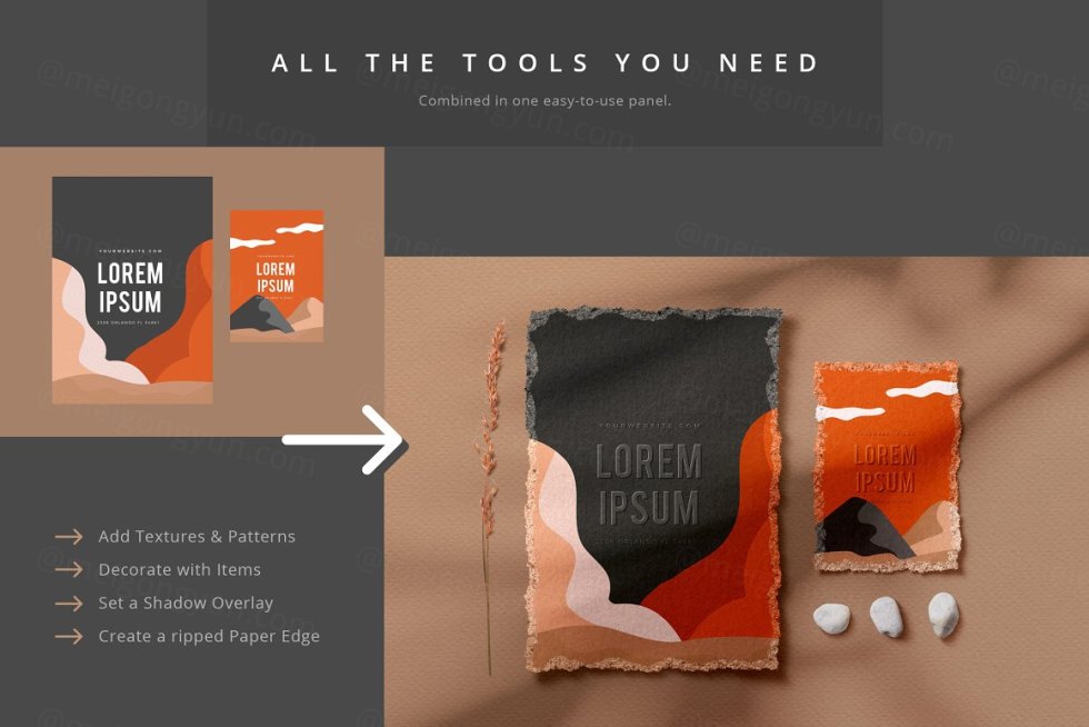 结合边缘扭曲和内部轮廓创建撕纸效果
