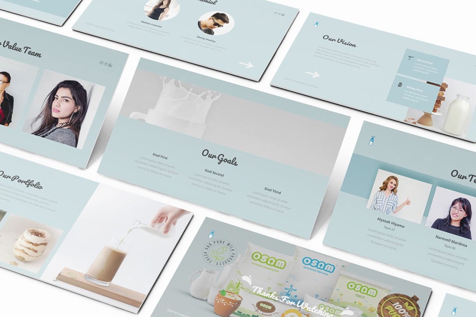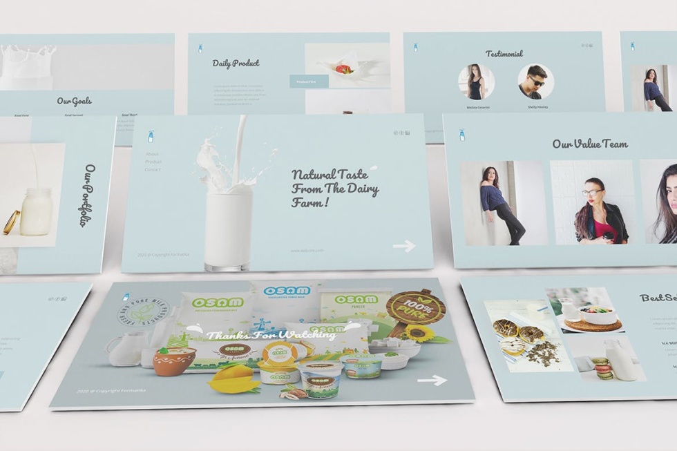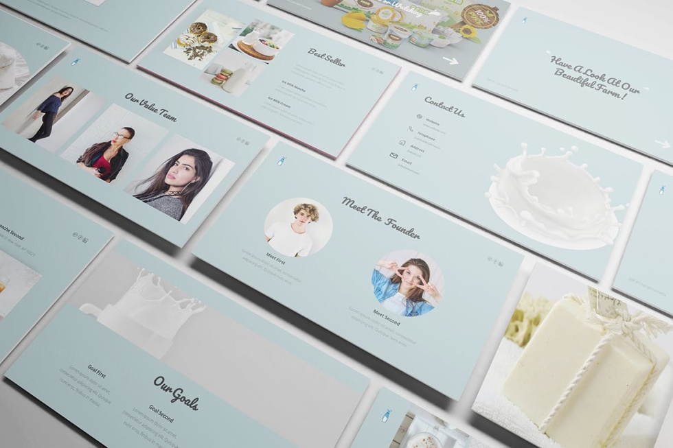 清新淡雅风格的牛奶工厂介绍PPT模板下载