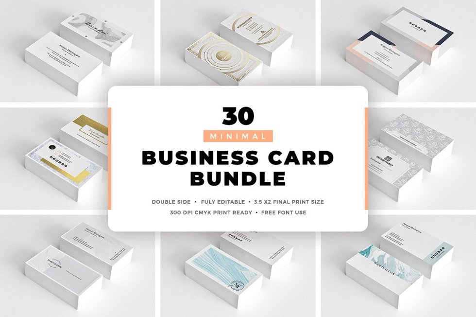 此名片包含30个高品质的Minimal Modern名片模板,适用于任何类型的商业或个人用途。