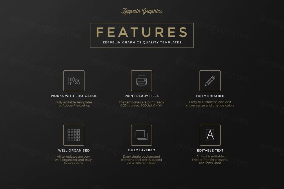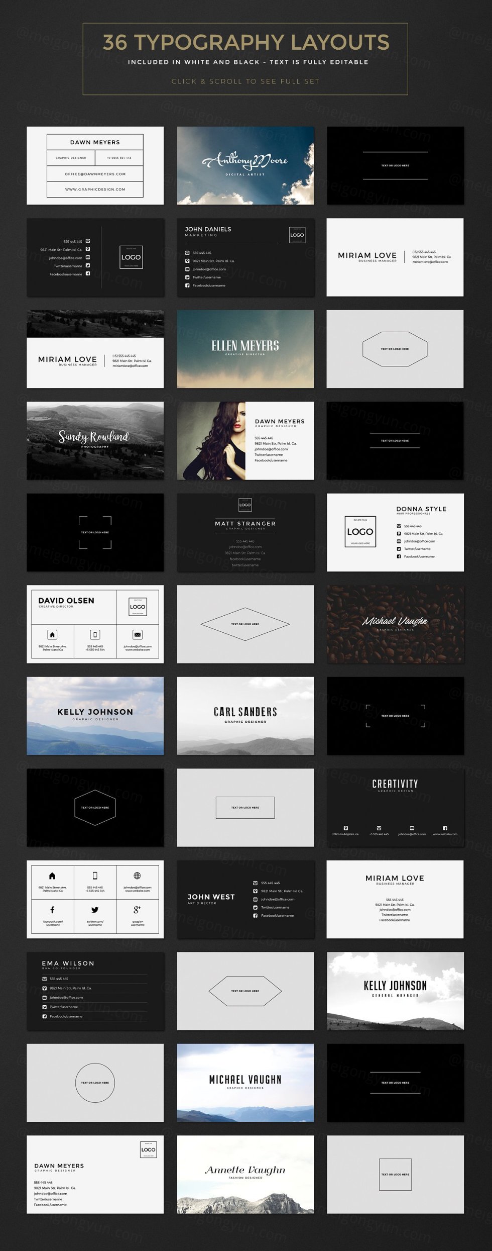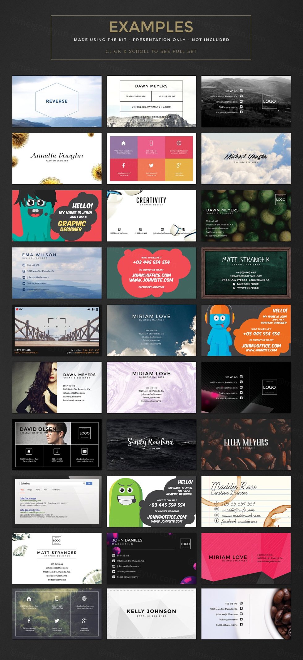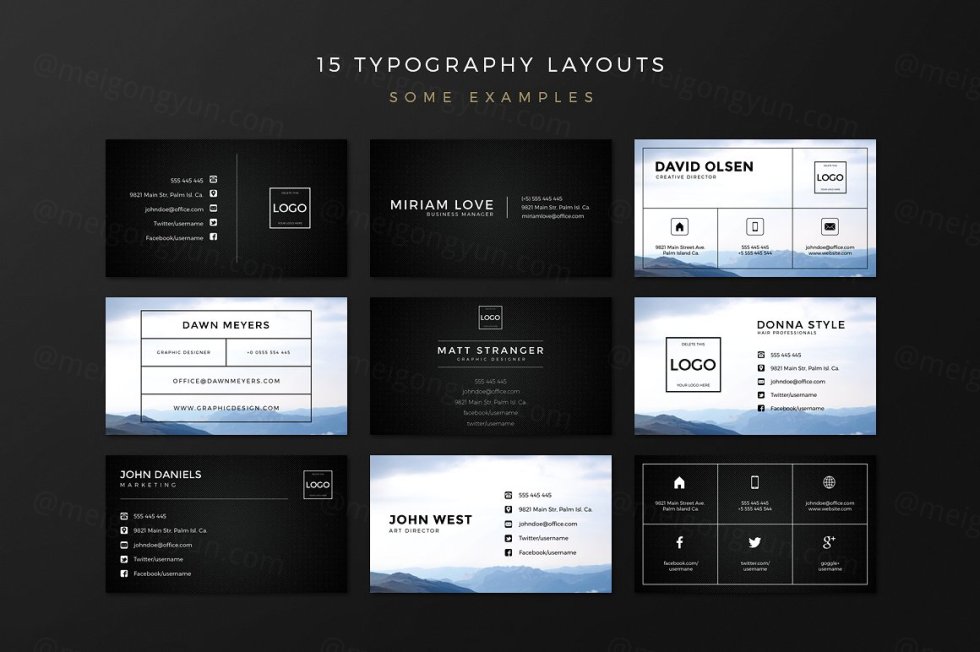 这组合集包括了5个全新排版布局,33个全新背景,它将帮助你为你自己或你的客户制作精美的名片!