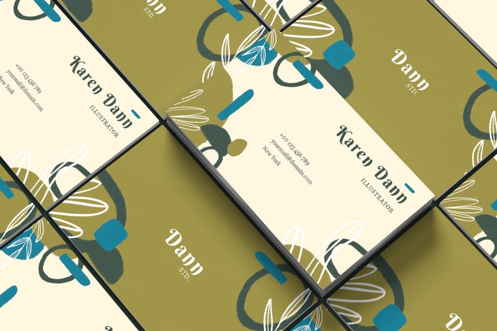 时尚高端简约抽象手绘风格的新孟菲斯风格名片设计模板