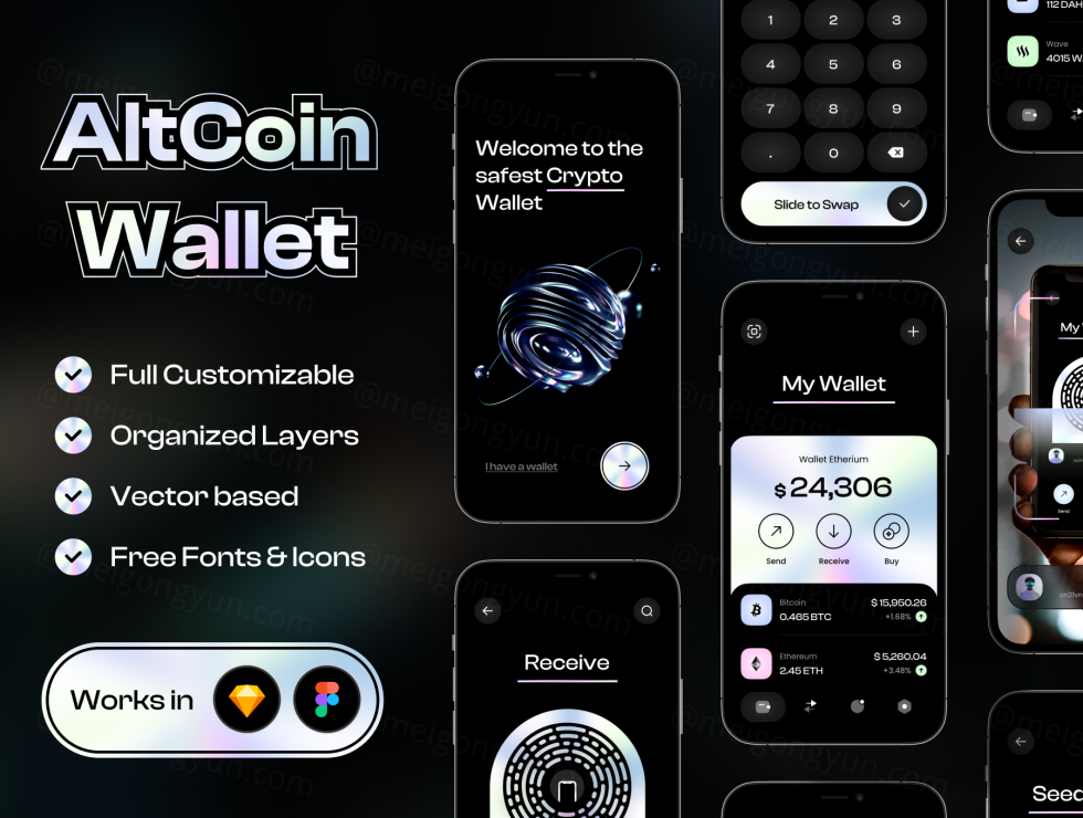 AltCoin Wallet - Crypto Wallet UI Kit 是一款来自中产阶级的新产品,是一款适用于 Figma 和 Sketch 的高质量原子 UI 设计套件。