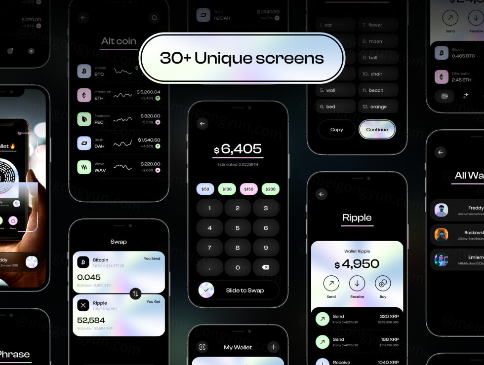 山寨币钱包 | 加密货币钱包| 30 多个屏幕 | 可用于 Figma 和 Sketch