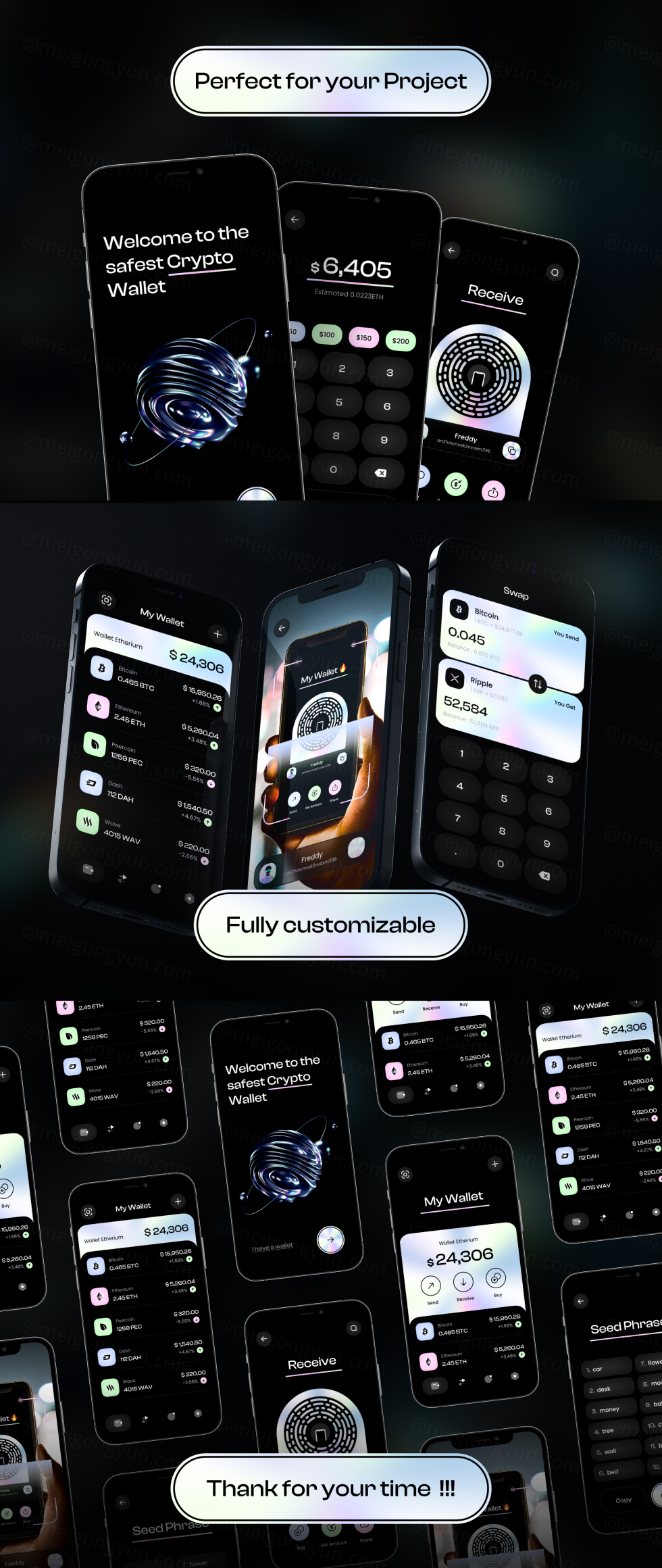 此模板非常适合加密货币钱包、银行应用程序、交易或任何其他金融应用程序。使用此模板,您可以创建华丽且引人注目的钱包应用程序设计。它是您项目的理想选择。