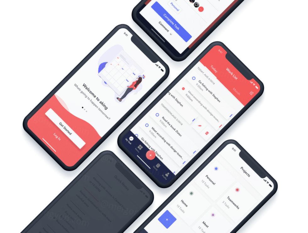 时尚简洁工作任务管理系统移动手机APP UI工具包Aking To Do UI Kit