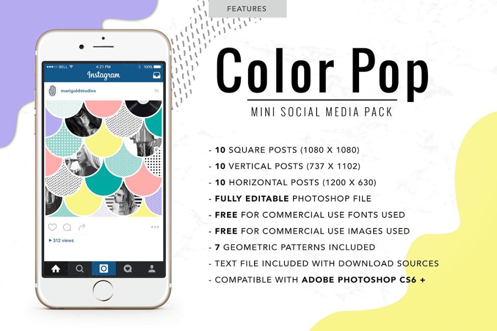 彩色流行社交媒体包是一个有趣和大胆的社交媒体包设计灵感来自孟菲斯潮流和流行艺术灵感设计。