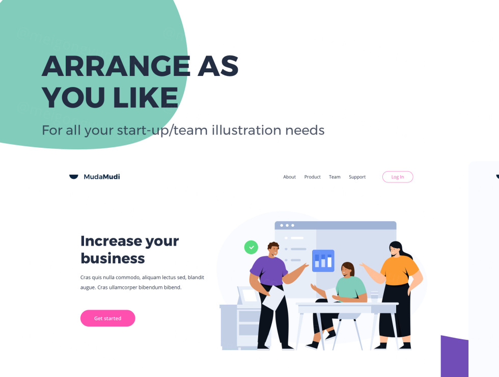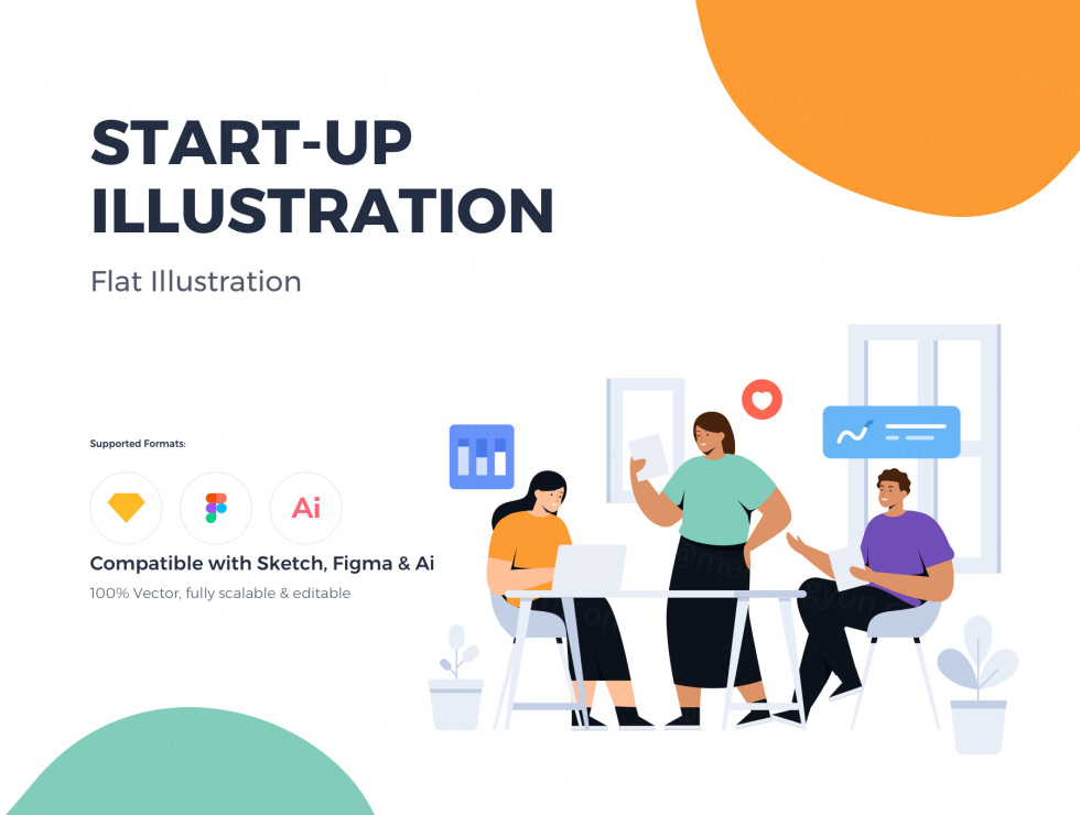 这款启动/团队合作主题网站插画结合了动态形状,可满足您的网站,移动应用程序的需求。所有插画都是基于矢量的,可编辑且可缩放的。对于设计人员,开发人员,初创公司和设计机构来说非常有用,可以加快设计过程。
