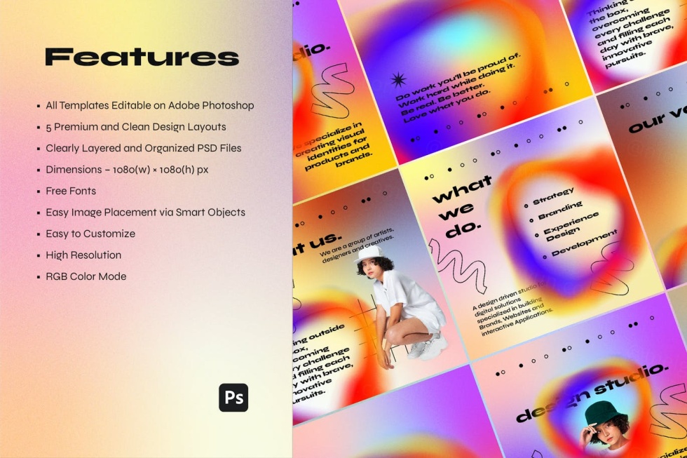 在 Adobe Photoshop 上可编辑的所有模板